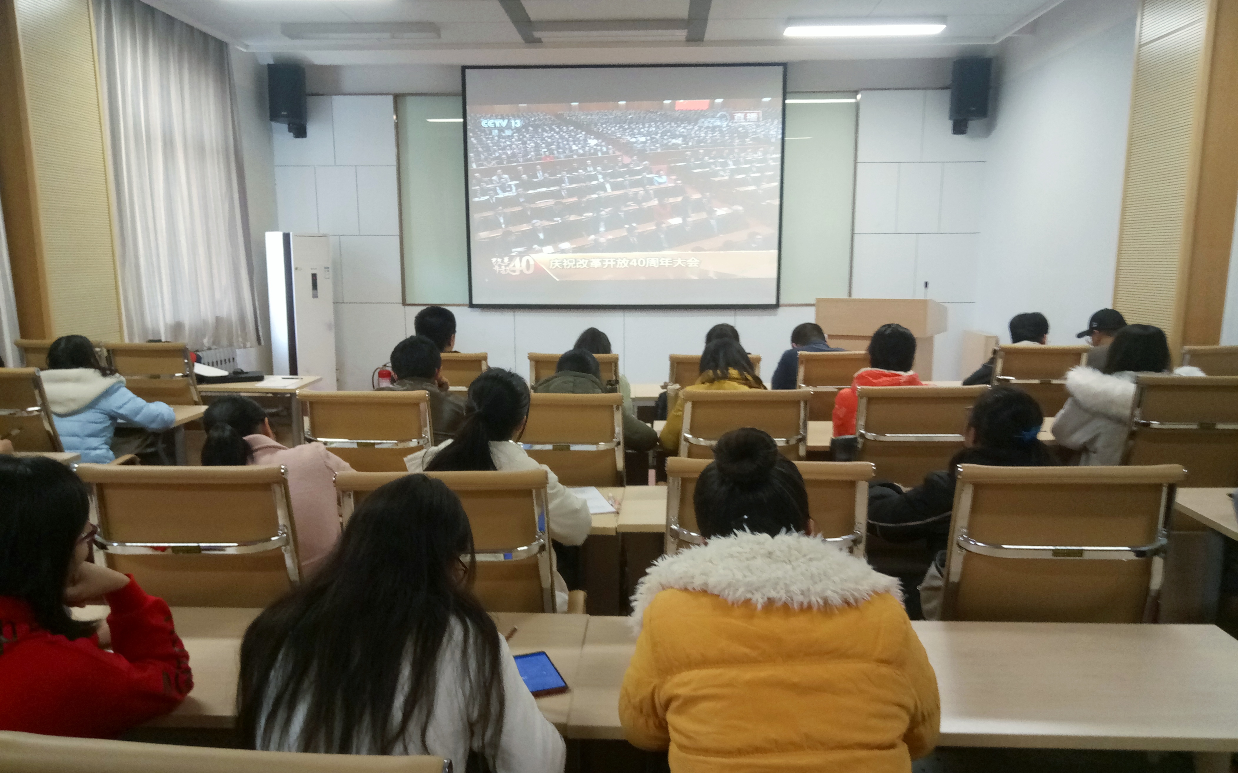 师生收看改革开放40周年大会直播