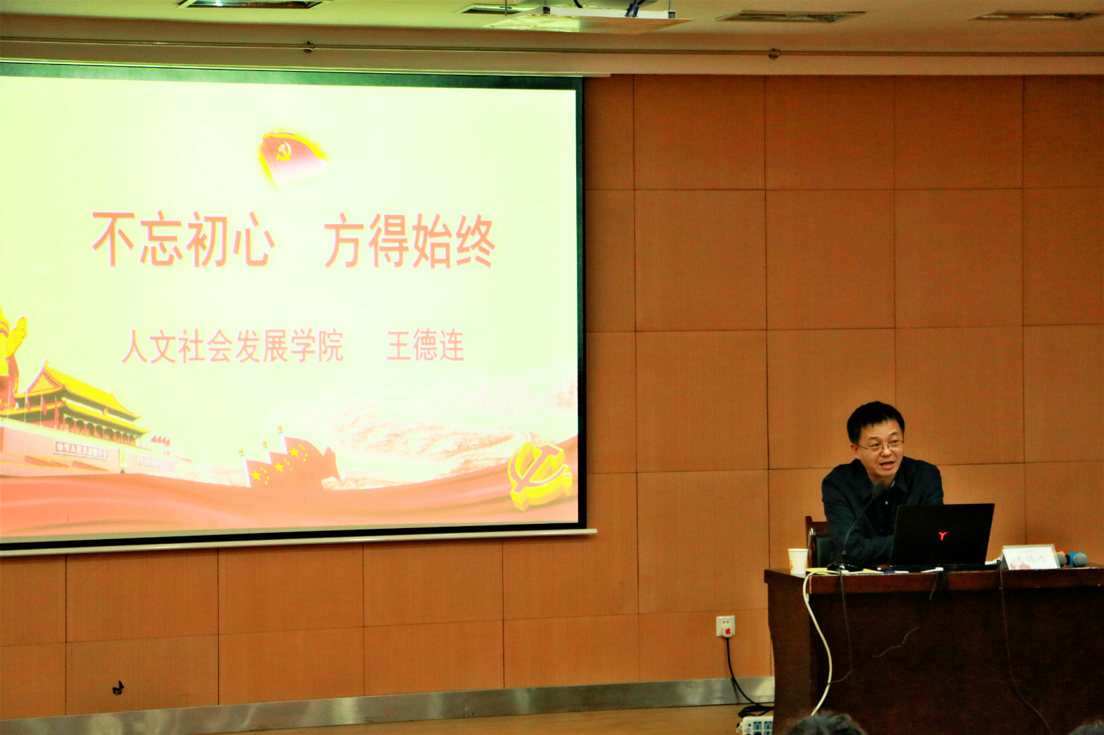 开班仪式在雄壮的《国际歌》中圆满结束。开班仪式后,王德连作了“不忘初心,方得始终”首场党课。