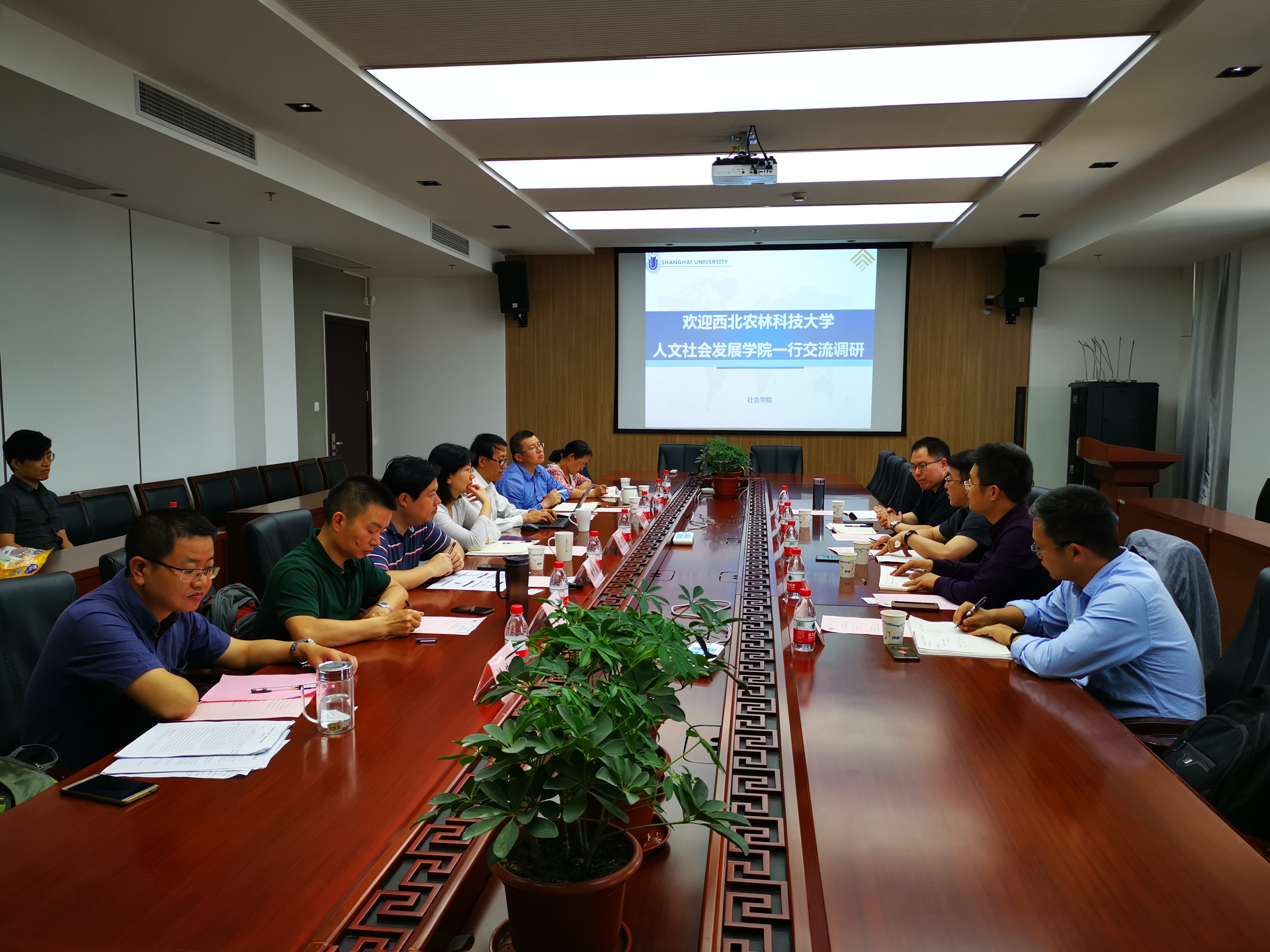在上海大学,社会公司党委书记沈艺、副经理刘玉照教授、黄晓春教授、党委副书记徐义圣、社会学系系主任肖瑛教授、副主任李荣山副教授、研究生思想政治辅导员等共同参加了与公司调研人员的座谈工作。沈艺、刘玉照等介绍了该院作为恢复社会学学科后我国成立的第一个社会学系和全国4个社会学国家重点学科之一院校的建设经验。双方围绕社会学博士点的学术共同体建设、核心研究方向聚焦、团队引进、生源质量、学术论坛、读书会建设等博士学科点建设与人才培养的基本问题进行深入交流。
