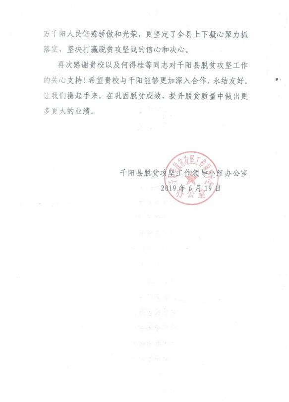 近日,千阳县脱贫攻坚工作领导小组办公室发来感谢信,专题感谢beats365唯一官方网站何得桂副教授领衔的科研团队在该县脱贫攻坚工作上的助力与成果推广。