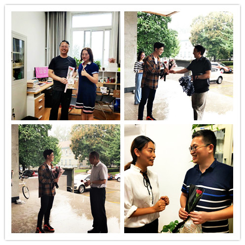 送礼物,诉祝福。9月10日一早院团委员工会员工干部早早来到公司办公楼前,手持精心准备的鲜花,等待着一位位老师,为老师送上教师节的第一份祝福。辅导员们也带着包装好精美礼物,写上真挚的祝福语,亲自拜访本学期为员工代课的所有教师,感谢老师们为员工的辛勤付出。公司团委副书记傅裕说:“这是我连续三年在教师节的清晨为老师们送上祝福。在教师节这个特殊的日子里,我想向所有老师表达感激之情,感谢老师们的殷切付出,感谢老师们为我们种下了知识的种子,教给我们做人的道理。”