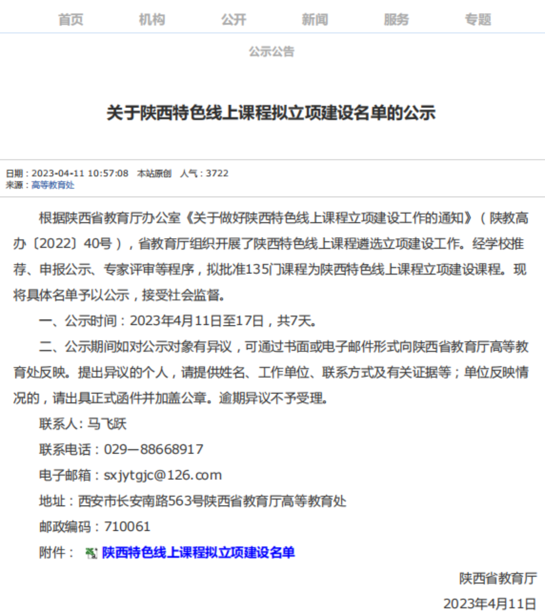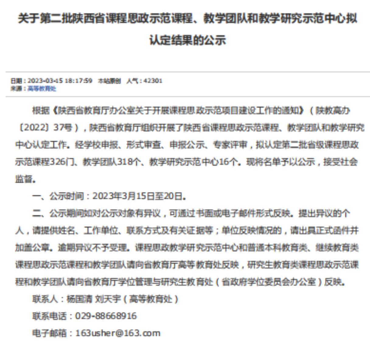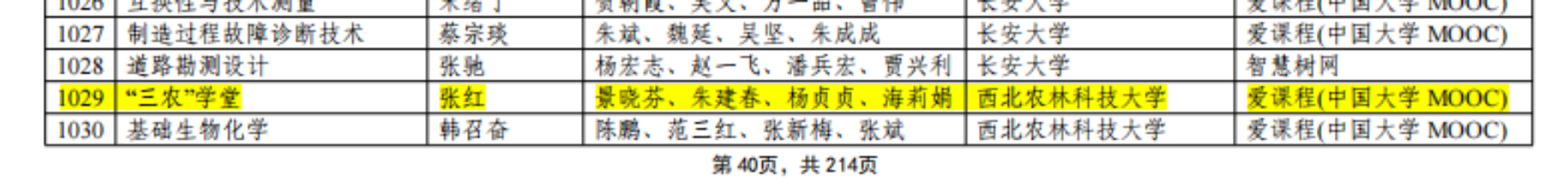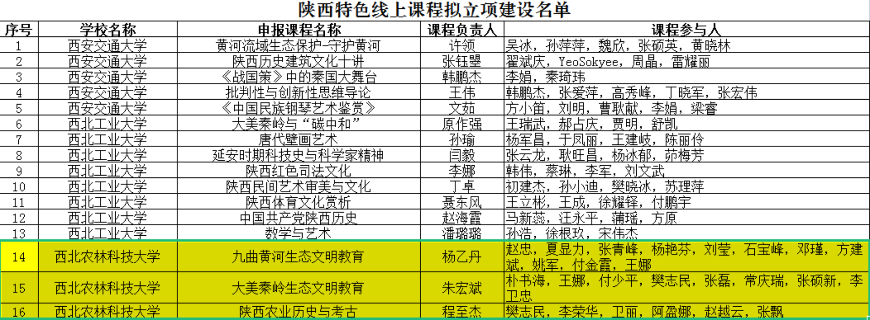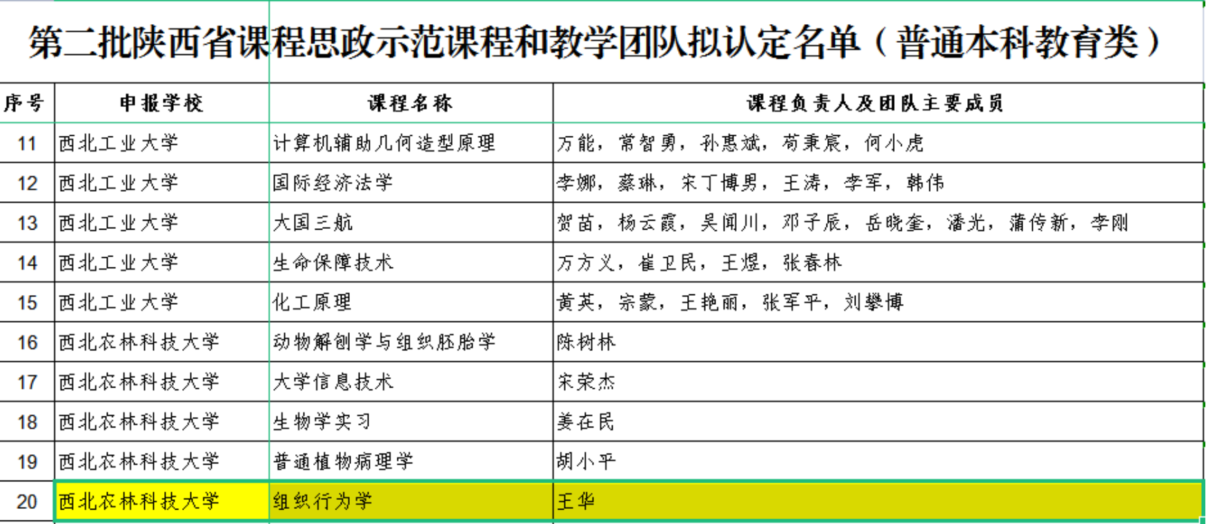 4月11日,教育部公示了第二批国家级一流本科课程,公司张红教授主讲的《“三农”学堂》入选国家级线上一流本科课程名单。陕西省教育厅公示了陕西特色线上课程立项建设名单,公司朱宏斌教授的《大美秦岭生态文明教育》课程、杨乙丹教授的《九曲黄河生态文明教育》课程、程至杰副教授的《陕西农业历史与考古》课程入选。3月15日,陕西省教育厅公示了关于第二批陕西省课程思政示范课程、教学团队和教学研究示范中心认定结果,公司王华副教授的《组织行为学》课程被认定为陕西省课程思政示范课程。
