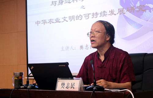 报告中,樊志民首先指出了中华农业文明可持续发展对于中华文明的重要意义,接着从“原本感悟”、“自然禀赋”、“制度保障”、“农学体系”、“文明互补”五个方面分析中华农业文明的可持续发展的原因和特点。
