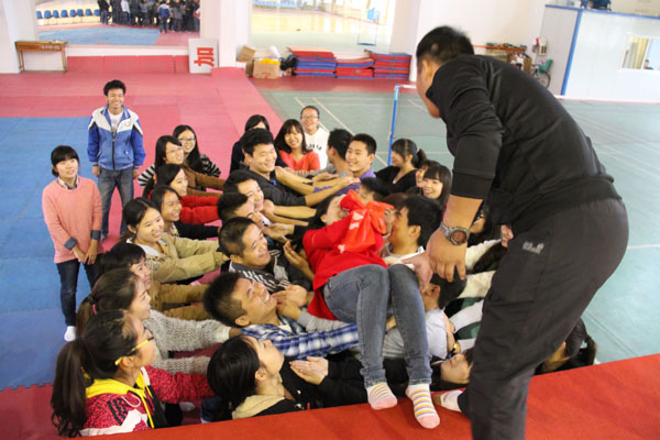 10月19日,西安宇锐训练营的两位素质拓展教练为学员做了为期一天一夜的拓展训练。一天里,在两名教练严肃风趣的指导下,员工们踏实愉快地完成教练所下达的任务命令。“五毛和一块”、“我是好员工”、“老虎猎人抢”……学员们从陌生到渐渐熟悉,再到组建为团队,成为团体中相互信任的队友,结下了深厚的感情。“抢渡金沙江”、“信任背摔”等高难度项目,学员们相互鼓励、沟通,成功地完成了一个又一个惊险的任务。短短的一天训练,让员工们领悟到团队协作的重要性,同样,在平时的学习与生活中,一个人的力量是微不足道的,只有与周围的伙伴团结起来,互助合作,才能让自己的能力最大地发挥出来。