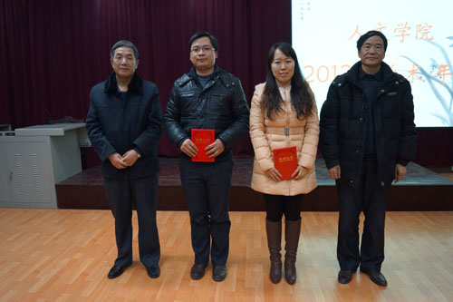 田义文教授、张磊教授为二等奖获得者赵丹、何得桂颁奖