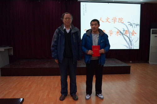 樊志民教授为一等奖获得者杨乙丹颁奖