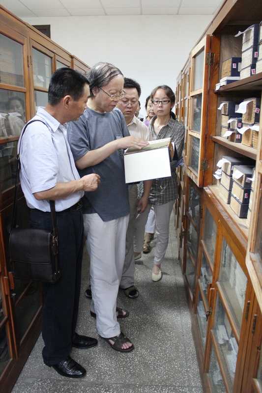 樊志民教授陪同胡云安书记一行参观公司线装书库