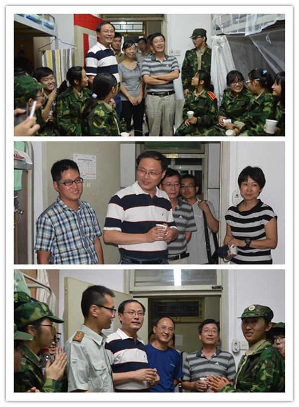 每走进一间宿舍,一行人都细心地询问新生们的生活适应情况和对于公司的感受,为新生们介绍了军训期间的时间安排,提醒他们在校注意财产安全,并和各班班主任做了亲切的交流。并且,王书记在各宿舍特别统计了南北方员工的人数,鼓励南方同学能够尽快适应北方的衣食住行与气候。王经理勉励新生,尽快完成从中学到大学的角色转换,融入新集体,投入到新的学习生活来。