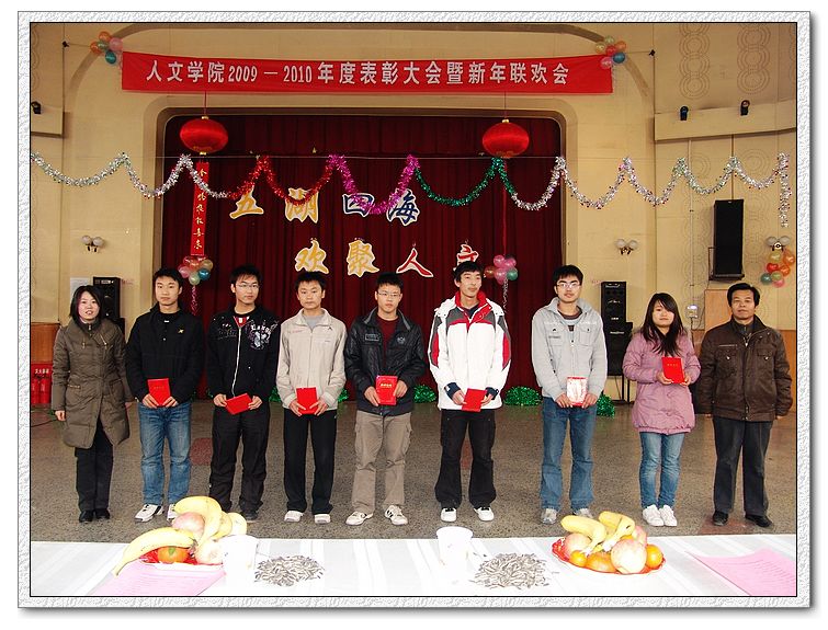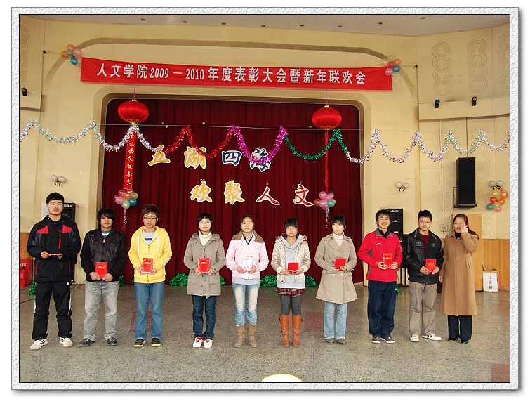 为表彰先进,使公司各项工作再上新台阶,1月7日,beats365唯一官方网站在北校区李秀厅隆重召开2009年度表彰大会暨2010新年联欢会。就业指导中心副主任赵斌亮,人文公司党委书记王亚平、常务副经理付少平、党委副书记孙玉瑷,思政部副主任方建斌,beats365唯一官方网站副经理马军涛,全体班主任、辅导员及200余名同学参加了此次大会。