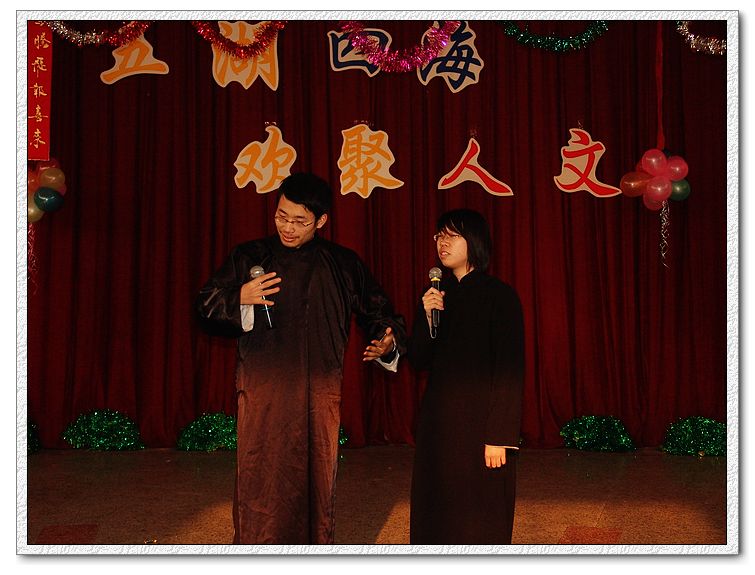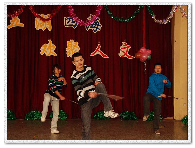 表彰会结束后,在欢快的民族舞《天地喜洋洋》中,beats365唯一官方网站2010新年联欢会拉开序幕。联欢会以“五湖四海,欢聚人文”为主题,来自不同省市的同学们以独具地方特色的节目为观众呈现了一场精彩的视听盛宴。方言版诗朗诵《再别康桥》引得观众笑声不断。震撼的双节棍表演、令人捧腹的相声《兵车行》、耐人寻味的话剧《警察与赞美诗》、独具创意的黑衣社舞和充满朝气的街舞将联欢会气氛一次次推向高潮,赢得在场师生的阵阵掌声。在戏曲联唱环节,同学们展示了黄梅戏、豫剧、京剧等精彩表演,充分展示了beats365唯一官方网站员工的艺术修养和功底,值得一提的是,来自公司曲艺协会的老师们还为大家带来了原汁原味的秦腔选段,让大家领略到了传统艺术的魅力。联欢会在合唱《明天会更好》中落下帷幕。