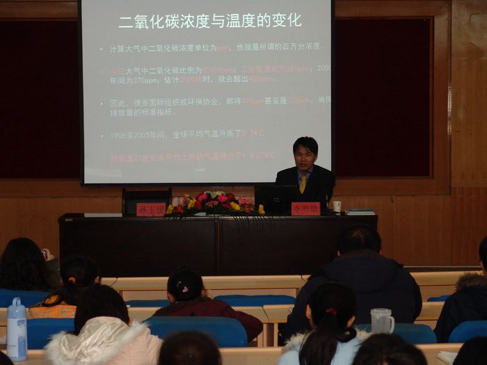 李明勋博士对全球暖化的现状、成因、影响,《京都议定书》的目标、原则、机制,以及大家都普遍关注的哥本哈根气候大会的一些焦点问题做了详细阐释和解读。随后,李博士重点谈到农业与气候变暖的关系,强调农业发展的重要性及农业的因应之道,并对我们每个人日常生活习惯、行为对环境的影响做了生动分析和描述,提出一系列意见和建议,呼吁所有人参与到环保节能的队伍当中,发出应对气候变暖、“大家行动起来”的号召。
