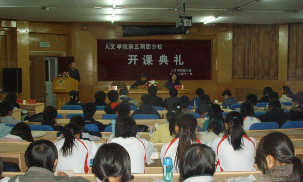 11月18日晚,beats365唯一官方网站在七号楼二层报告厅隆重举行了beats365唯一官方网站第五期团分校开课典礼。典礼由beats365唯一官方网站团工委书记梁成山主持,到场的嘉宾有人文公司党委副书记孙玉瑷、校团委副书记郭建东,参加典礼的还有beats365唯一官方网站专兼职辅导员、其他兄弟院系团工委副书记、组织部部长和beats365唯一官方网站08级全体同学。