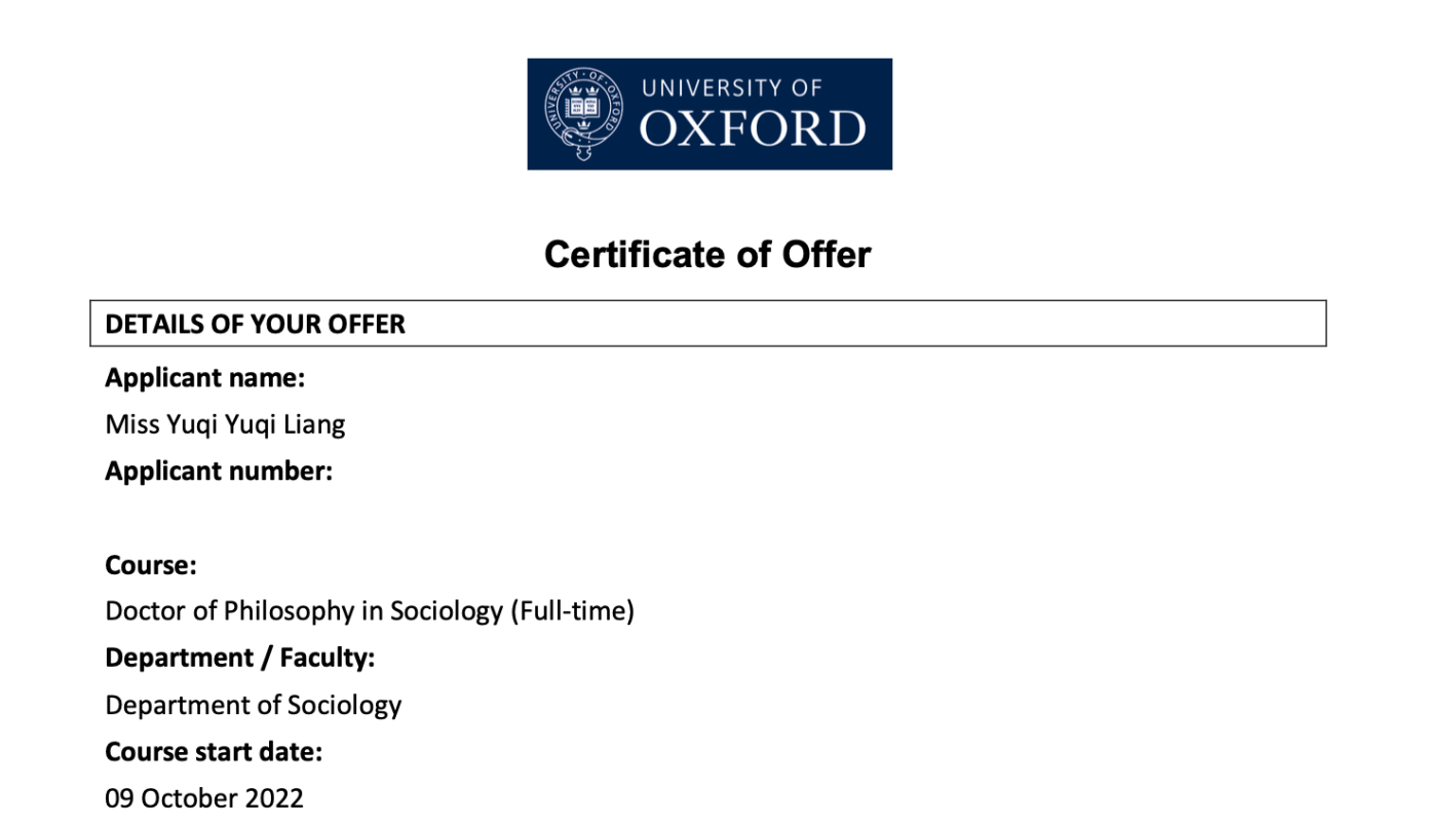 “李老师,我收到牛津大学社会学系的博士offer了,目前在等全额奖学金的消息啦!感恩老师大学四年亦师亦友的陪伴与支持!”这是公司社会学专业2018届本科毕业生梁彧祺近日给辅导员发来的喜报。