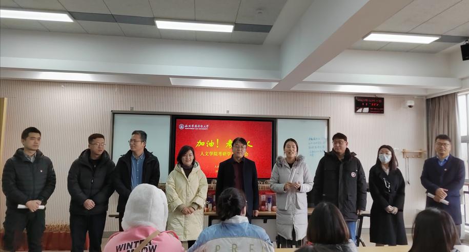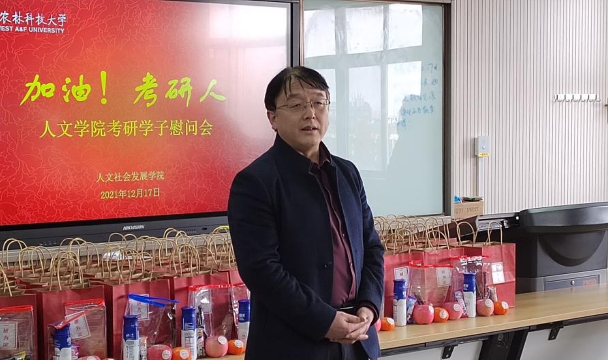 朱宏斌向考研学子送上了真挚的祝福与真切的关怀。他表示考研犹如千军万马过独木桥,对同学们勤奋刻苦的拼搏精神点赞。同时,他对考研学子提出三点希望:一是坚定目标,咬紧牙关,以一往无前的奋斗姿态冲刺考研“最后一公里”;二是学会自我疏导,有效调适学习压力,要以从容不迫的良好心态迎接考研挑战;三是在紧张复习之余要劳逸结合、注意防寒保暖、做好疫情防控工作,要以身心俱佳的最优状态走上考研战场。“破釜沉舟,百二秦关终属楚;卧薪尝胆,三千越甲可吞吴。”发言最后他以一副对联为赠,衷心祝愿大家“考研必胜”!