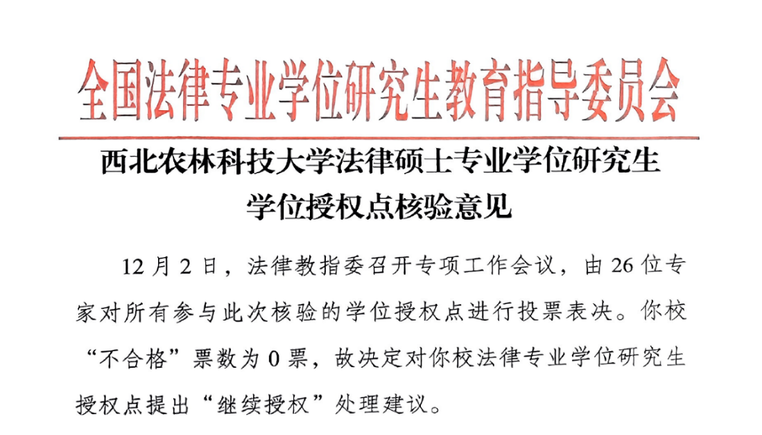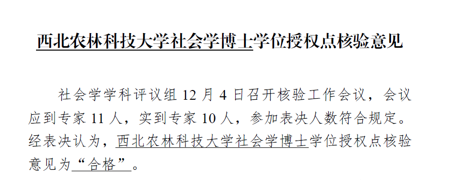 12月,两个学位授权点均顺利通过核验,证明公司社会学博硕士研究生和法律硕士专业学位研究生的培养条件和学位授予质量均达到国家要求。公司将再接再厉,团结协作,为国家培养更多知农爱农的高质量研究型人才!